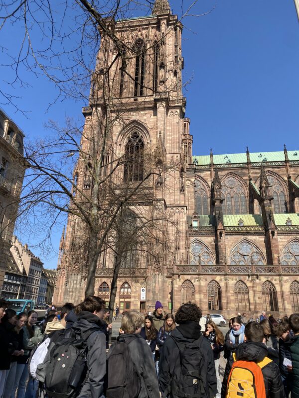 Am nächsten Morgen wurden wir von unseren Partnern an den Bahnhof gebracht und dann ging es auch schon nach Strasbourg! Dort haben wir uns wieder Vorträge von unseren Mitschülern angehört, die sehr interessant waren. Danach haben wir die Kathedrale in Strasbourg besucht, die sehr bewundernswert war! Danach sind wir mit der Tram ins Europaviertel gefahren, wo wir eine spannende Rallye gemacht haben. Dadurch haben wir viel über das Europäische Parlament und das Viertel gelernt. Dann hatten wir 2 Stunden Freizeit in der Innenstadt, wo wir gemeinsam Essen gekauft haben und shoppen waren. Anschließend haben wir uns um 17 Uhr mit unseren Partnern am Bahnhof in Mulhouse getroffen.