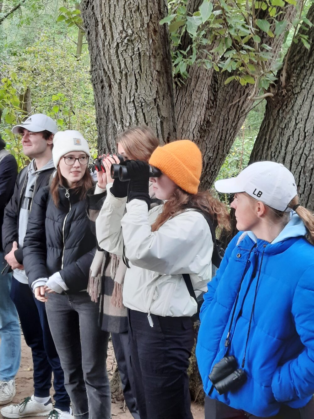 Im Spätherbst hat sich das Experiment Erde Profil S3 mal wieder auf Exkursion begeben. Unser Ziel war das gezeitengeprägte Naturschutzgebiet Heuckenlock, Hamburgs letztem Urwald an der Süderelbe. Es liegt im Süden der Hamburger Elbinsel Wilhelmsburg nahe der Bunthäuser Spitze. Dafür sind wir mit festen Schuhwerk und Ferngläsern ausgestattet nach Wilhelmsburg gefahren, haben dort eine Rangerin von der Gesellschaft für ökologische Planung e.V. getroffen und uns auf einen Rundgang durch das Naturschutzgebiet begeben. Da Naturschutzgebiete von uns Menschen möglichst wenig beeinflusst werden sollen, waren die Regeln wie erwartet: Keinen Müll liegen lassen, nicht zu laut sein, um die einheimischen Tiere nicht zu erschrecken, und unter keinen Umständen den vorgegebenen Pfad verlassen. Bei einem Spaziergang durch die charakteristische Flora und Fauna einer Tideaue kamen auch Themen wie Ebbe & Flut, Elbvertiefung und Klimawandel nicht zu kurz. Die Rangerin hat uns während des Rundgangs viele Informationen über das Naturschutzgebiet Heuckenlock gegeben. Es liegt außerhalb der Hochwasserschutzanlagen und wird dadurch ungefähr hundertmal pro Jahr durch Spring- oder Sturmfluten überspült. Deshalb ist das Heuckenlock ein typisches Auwaldgebiet. Das ist uns beim Rundgang auch aufgefallen, da der Boden sehr durchnässt war, so dass einige fast ausgerutscht sind. Die Rangerin hat uns auch über die Tierwelt aufgeklärt. Es gibt natürlich eine große Vielfalt an Insekten und durch die häufigen Überflutungen schwimmt auch eine Vielzahl an Fischen durch das Heuckenlock. Wenn die Fluten sich wieder in die Süderelbe zurückziehen, sind viele Fische gestrandet, was für Großvögel wie Störche und Rohrdommelen ein gefundenes Fressen sind. Es gibt sogar ein Seeadlerpaar, das unter anderem im Heuckenlock gesichtet wurde. Nach dem Rundgang war die Exkursion auch schon vorbei und wir haben auf den Bus gewartet, der uns nach Hause brachte. Es war sehr interessant, durch ein Naturschutzgebiet zu gehen und den gelernten Unterrichtsstoff aus dem ersten Semester in der Natur anzuwenden.