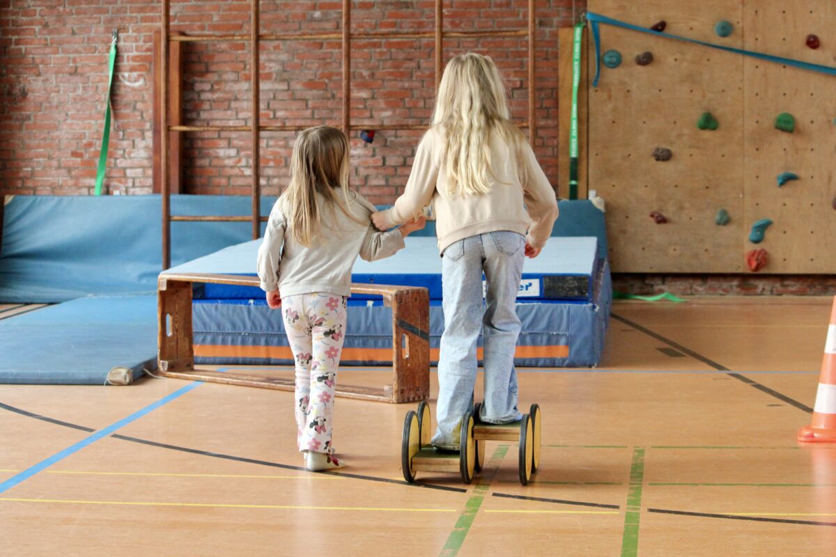 So ein Tag der offenen Tür – wie der am 17. Januar 2026 bei uns am Hochrad – ist keine einfache Angelegenheit! In kurzer Zeit gilt es für die Viertlässlerinnen und Viertlässler, möglichst viel auszuprobieren und dabei möglichst wenig Zeit neben Erwachsenen mit ihren zuweilen etwas langatmigen Gesprächen zu verbringen. Auf jeden Fall bei der Langlauf AG die lustigen Skier auf Rollen testen, malen in der Kunst, bei den Naturwissenschaften irgendein Experiment, so mit Feuer, Zischen, Zauberei, in der Sporthalle toben, bei den Sprachen ein Rätsel, ein Instrument ausprobieren, dann noch ein Spiel, ein Puzzle, ein Quiz, einen weiteren Stempel für die Rallye sammeln… An einem Tag der offenen Tür ist Schule nämlich recht unterhaltsam und selbst die Fächer, die man gar nicht so toll findet, machen plötzlich Spaß! Um die Zeit optimal zu nutzen, sind bei uns am Hochrad die Guides aus den 5. und 6. Klassen immer eine große Hilfe. Sie wissen nicht nur, wo es langgeht, sondern können Kindern und Eltern ganz viele Fragen direkt beantworten. (Ja, es gibt einen Ganztag und Essen in der Mittagspause und nein, man muss nicht perfekt Englisch können für Bili).