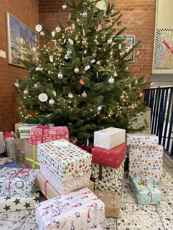 Der Elternrat freut sich mitzuteilen, dass bei „Weihnachten im Schuhkarton“ im Dezember über hundert Geschenkpakete gespendet und an die Kleiderkammer Regerstrasse übergeben werden konnten. Anbei ein Foto von dem schönen Weihnachtsbaum in der Eingangshalle der Schule mit vielen bunt verpackten Geschenken.