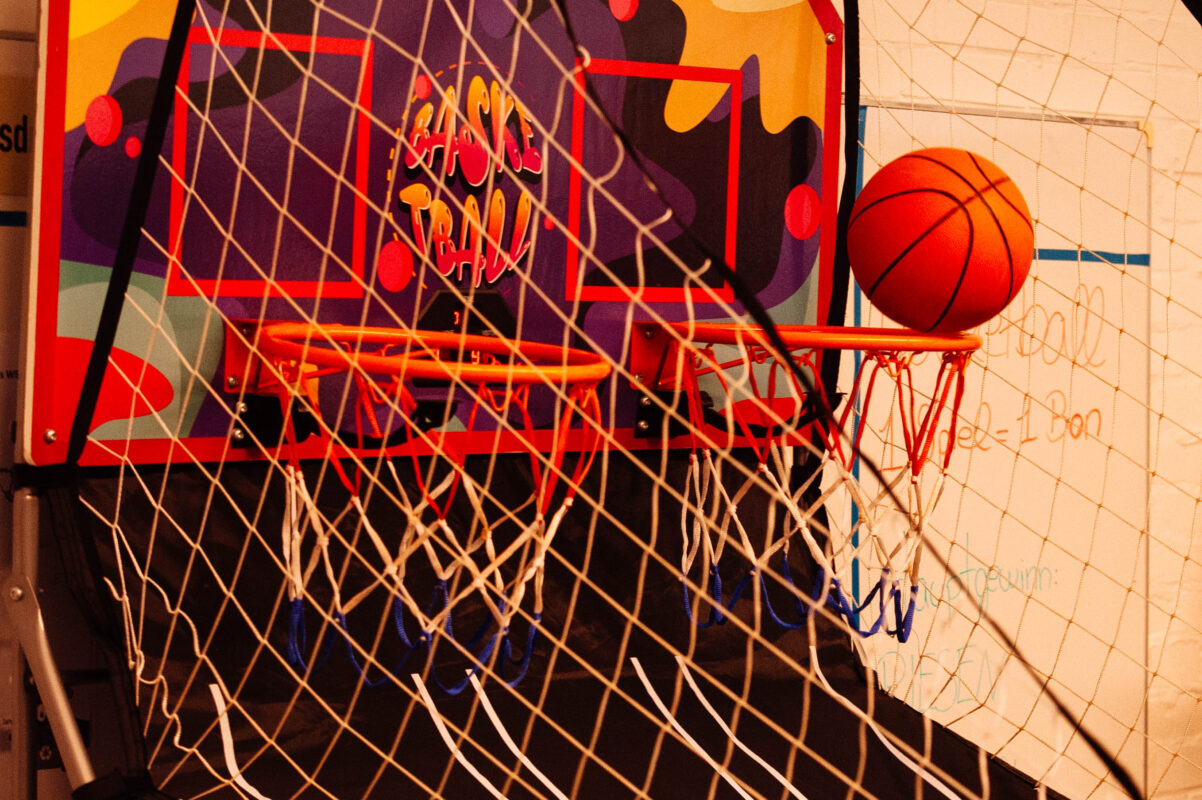 Die Klasse 7d hatte beispielsweise einen Raum gestaltet, der ganz im Zeichen einer Party stand, mit Musik und Partylicht. Besucherinnen und Besucher konnten zwischen verschiedenen Spielen wählen – von Poker und Roulette über UNO bis hin zu Darts und Basketball.