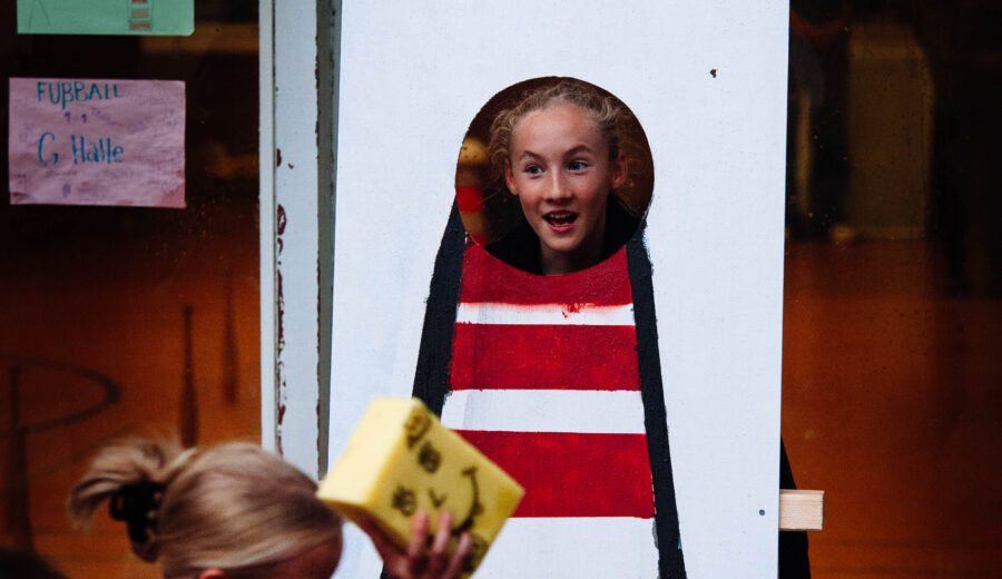 Irgendwann am Abend war der Moment gekommen: Die Pausenhalle hatte sich mit so vielen Gästen gefüllt, dass ein Durchkommen kaum noch möglich war. Das war aber nicht weiter schlimm, denn gerade im Eingang unserer Schule reihten sich zahlreiche Essensstände aneinander – der Aufenthalt dort lohnte sich also. Wie unser gesamtes Sommerfest! Mit großem Engagement und vielen kreativen Ideen hatten sich Schülerinnen und Schüler, Lehrkräfte und Eltern wieder einmal ins Zeug gelegt: