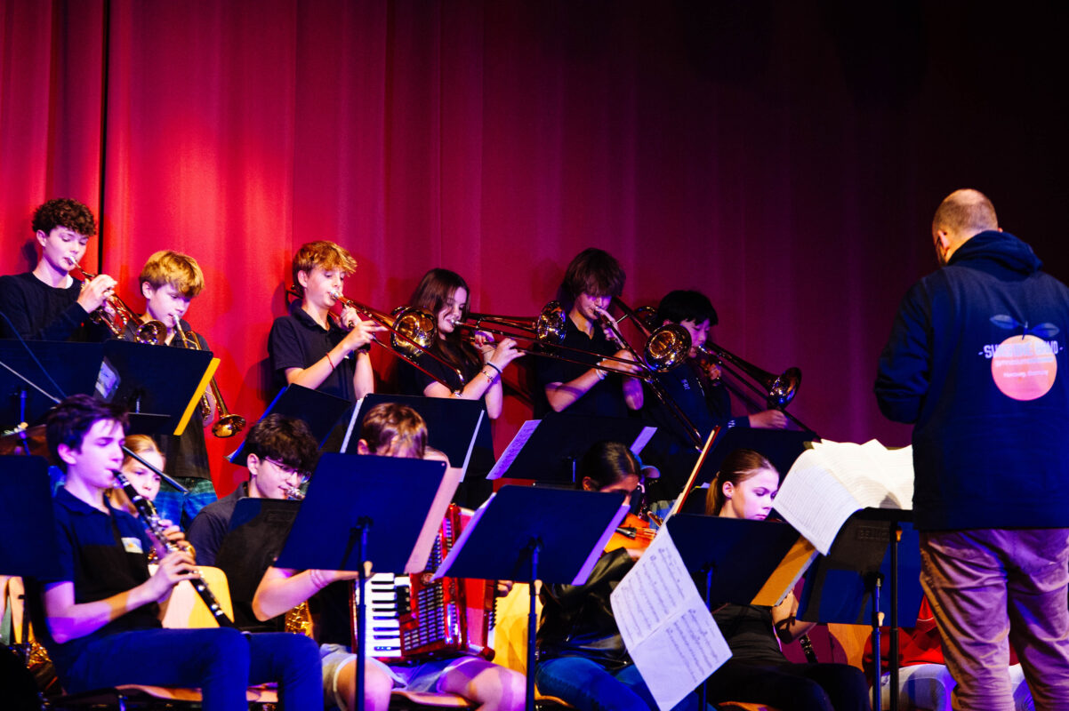 Zum zweiten Mal wurde die Aula zur Bühne vieler Konzerte. Statt des sonst üblichen Festzeltes. Die Sunshine-Band, das Orchester der 8. Klasse und die Lehrerband „Hochrad-Allstars“ sorgten für eine tolle Atmosphäre, während die Schulgemeinschaft in der Aula zusammensaß.