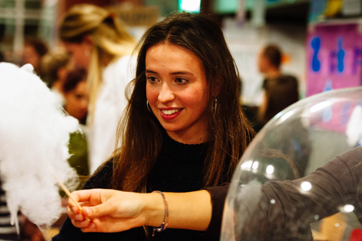 In der 9b konnte man sein Glück in einer Kombination aus Tombola und Darts auf die Probe stellen: Mit Dartpfeilen musste man auf Ballons zielen und mit etwas Glück konnte man Süßigkeiten, Kuchen, Brettspiele und anderes gewinnen.