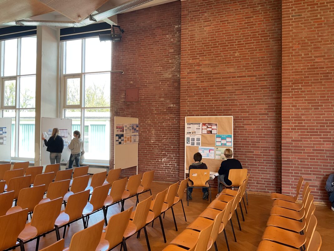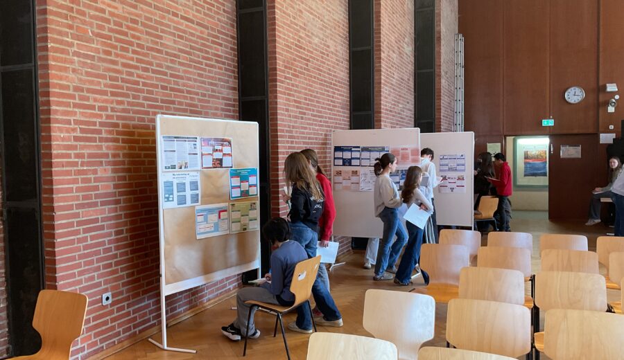 Die Schüler:innen der 9. Klassen haben im Januar erfolgreich ihre Praktika absolviert, dabei vielfältige Einblicke in die Berufswelt gewonnen und zahlreiche neue Erfahrungen gesammelt. Diese Eindrücke wurden nun kreativ in informativen und ansprechend gestalteten Plakaten festgehalten. Im Rahmen der Praktikumsmesse besuchten die 8. Klassen im Socs-Unterricht die Ausstellung in der Aula und sahen sich die Plakate der 9. Klässler:innen an. Dabei konnten sie zahlreiche Eindrücke sammeln und Inspirationen für mögliche Praktikumsbetriebe gewinnen, bei denen sie im kommenden Schuljahr ihr eigenes Praktikum absolvieren möchten. So entstand ein gelungenes, jahrgangsübergreifendes Projekt, das den Austausch zwischen den Jahrgängen fördert.