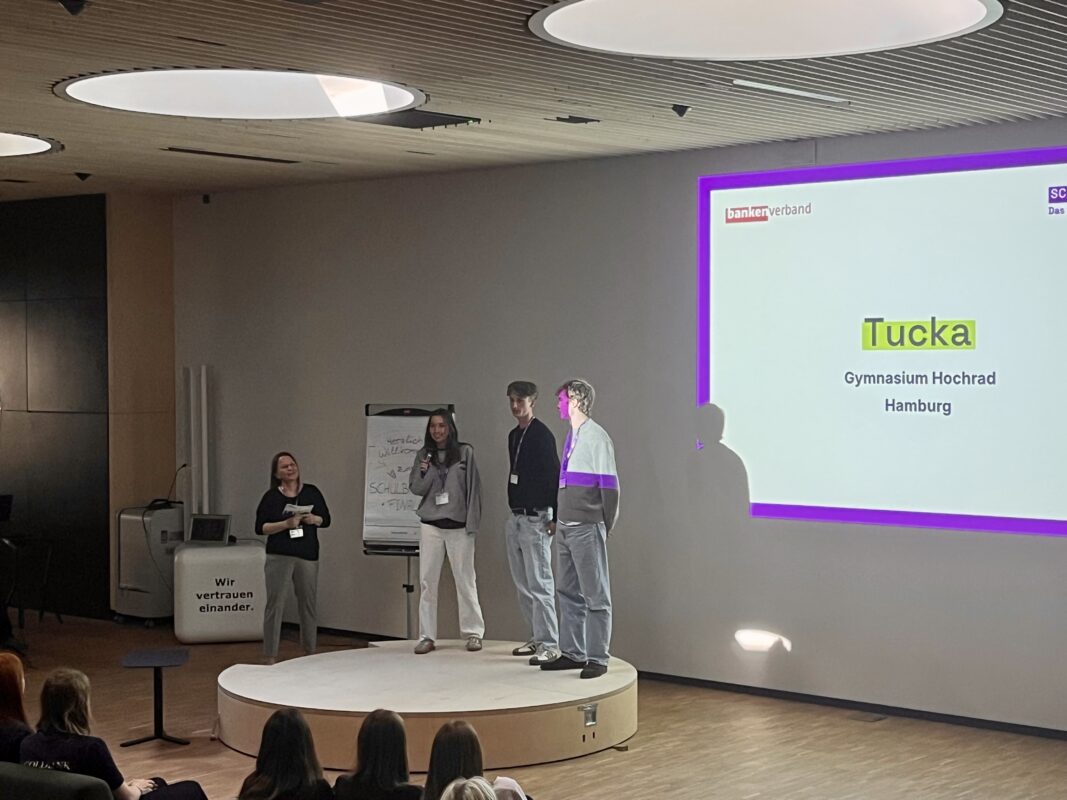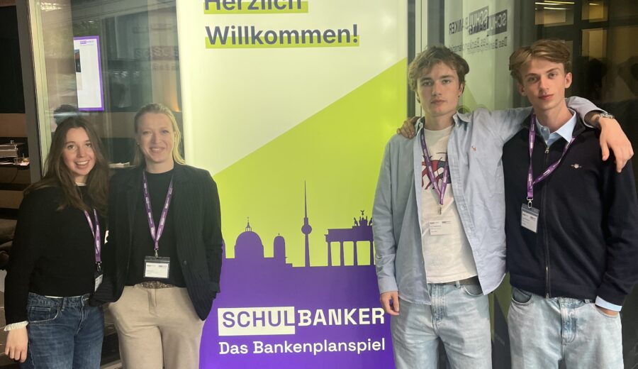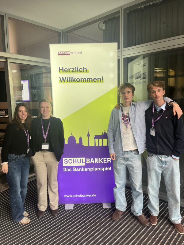 Ein Team aus vier Schülerinnen und Schülern des aktuellen S4-Global-Village-Profils hatte sich für das Bundesfinale des renommierten Wettbewerbs „Schulbanker“ qualifiziert. Der vom Bankenverband organisierte Wettbewerb findet im gesamten DACH-Raum statt – nur die 20 besten Teams schaffen es ins große Finale nach Berlin.