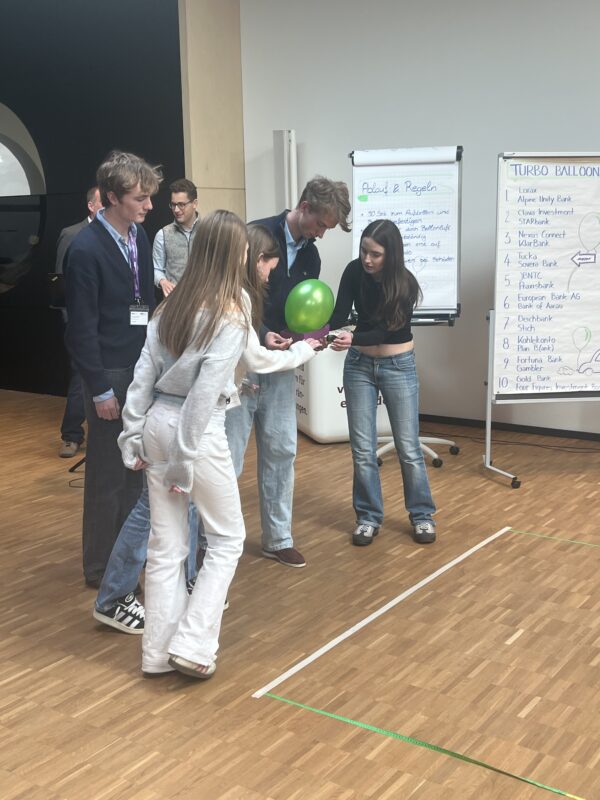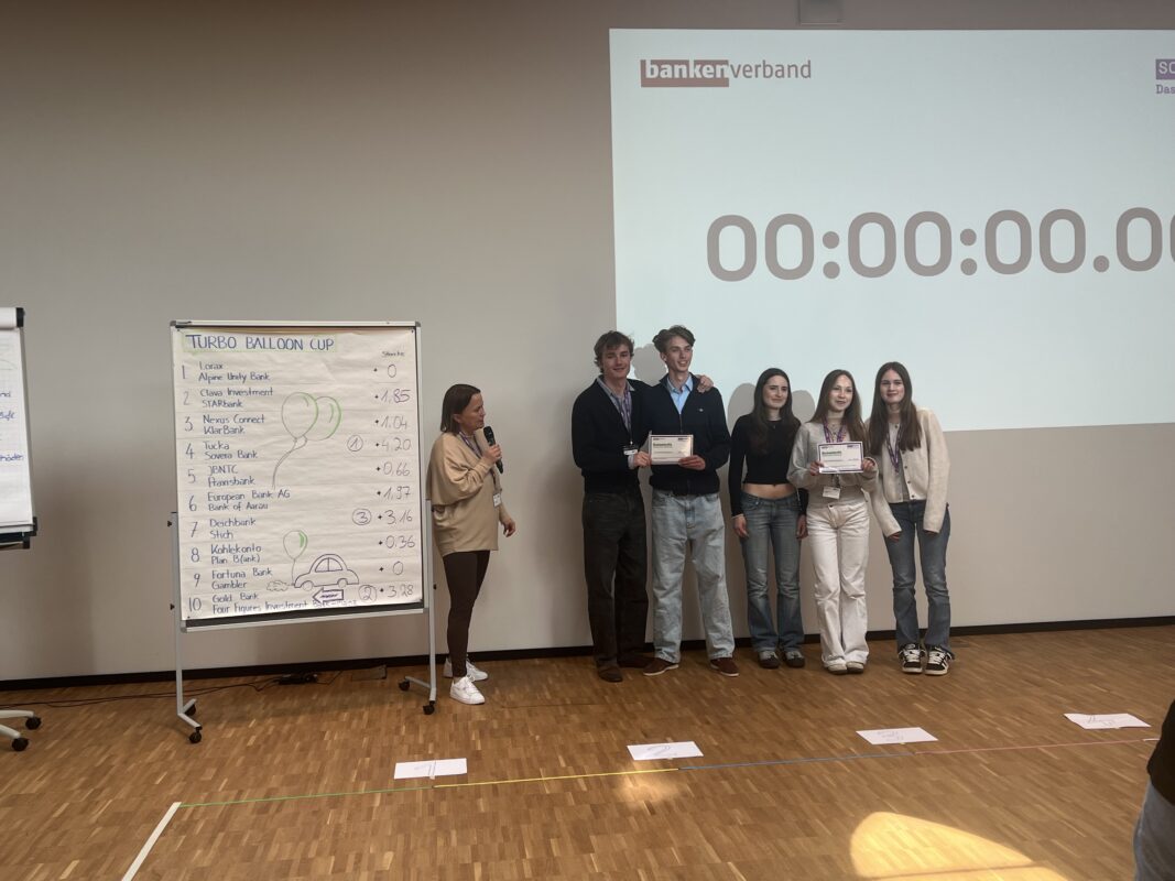 Zwischendurch blieb kaum Zeit zum Durchatmen. Neben kurzen Essenspausen sorgte eine Sonntagschallenge für Abwechslung: Beim Bau eines möglichst weit fahrenden Ballon-Autos konnten sich die Teams zusätzliches Marketingbudget erspielen. Die „Tucka Bank“ vom Hochrad setzte sich hierbei gemeinsam mit einem weiteren Team erfolgreich durch. Ergänzt wurde das Programm durch einen Vortrag zum Thema Cybersicherheit. Nicht immer lief alles reibungslos: Mehrfach musste das Team auf Notkredite zurückgreifen, Zinsen wurden teilweise zu niedrig angesetzt, und auch der Interbankenhandel verlief nicht immer wie geplant.